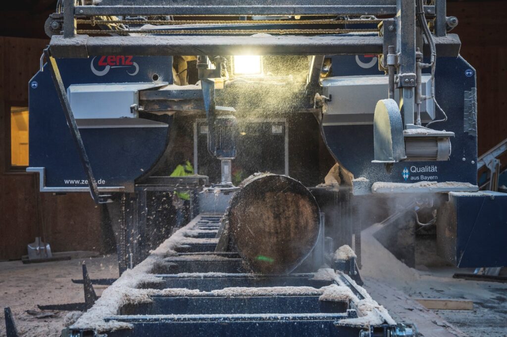 Um unseren Waldbesitzern möglichst alle Rundholzsortimente abnehmen zu können, haben wir eine Blockbandsäge zum Starkholzeinschnitt.
